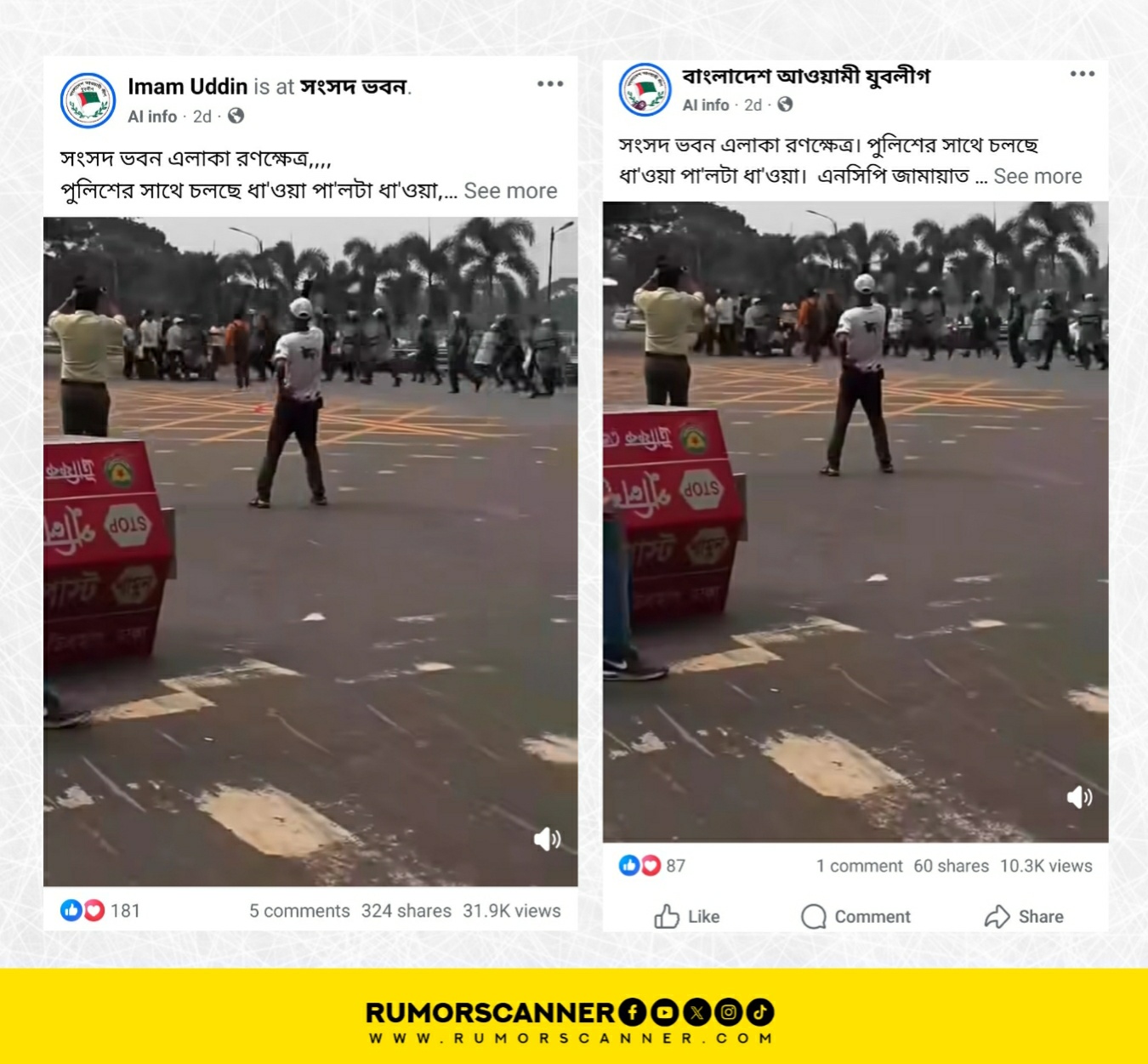 রিউমর স্ক্যানার টিমের অনুসন্ধানে জানা যায়, প্রচারিত ভিডিওটি ১৩ নভেম্বরের নয়। প্রকৃতপক্ষে, এটি গত ১৭ অক্টোবর সংসদ ভবন এলাকায় জুলাই সনদ স্বাক্ষরের অনুষ্ঠানকে কেন্দ্র করে পুলিশ ও বিক্ষুব্ধ জুলাই যোদ্ধাদের মধ্যে সংঘর্ষের ভিডিও।