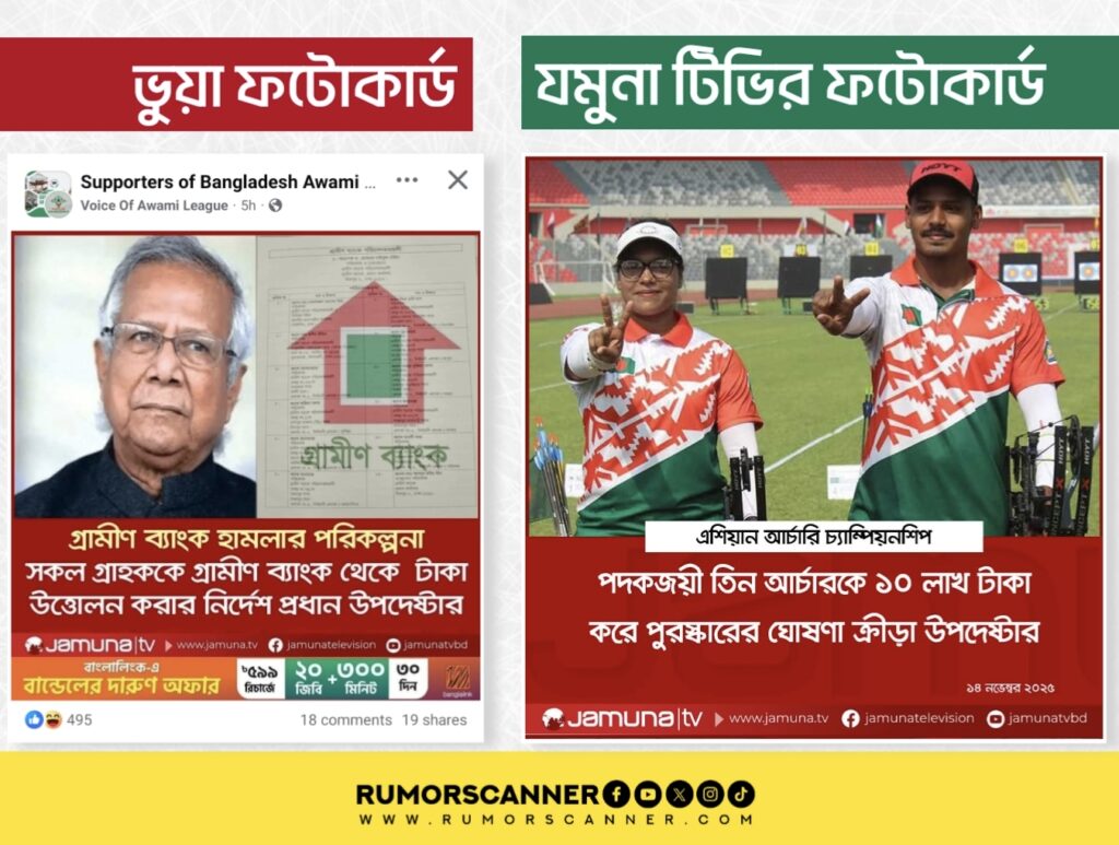 যমুনা টিভির ফটোকার্ড যুক্ত করে ফেসবুকে প্রচারিত পোস্ট দেখুন এখানে (আর্কাইভ)।