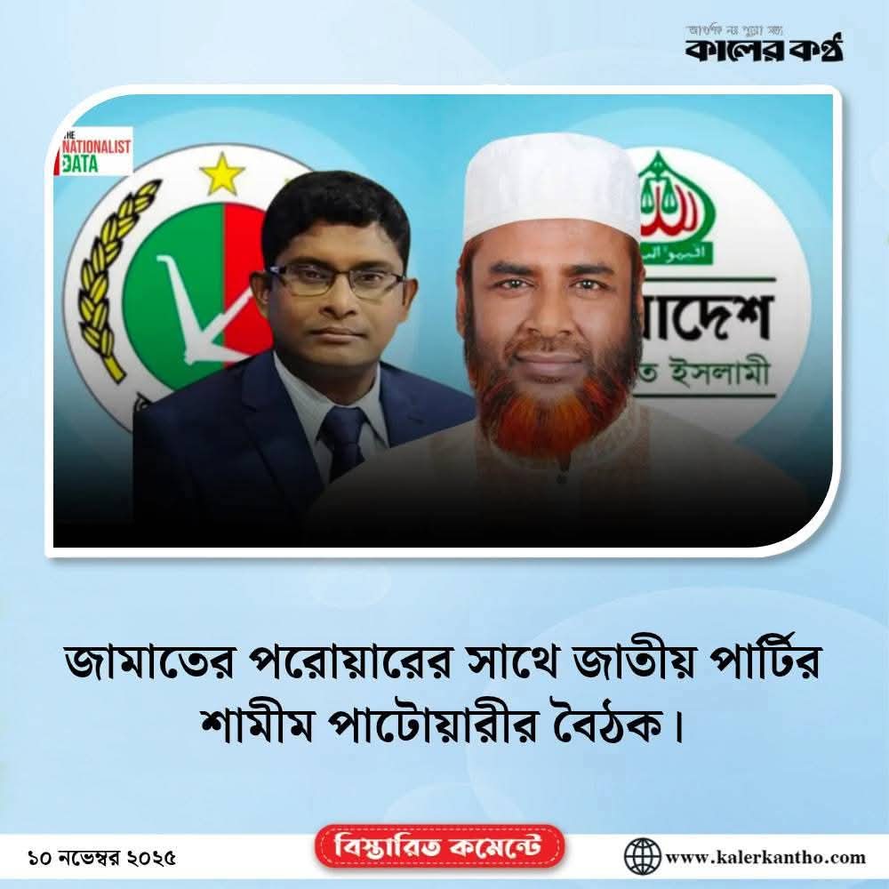 কালের কণ্ঠ এর ডিজাইন সংবলিত একটি ফটোকার্ডে দাবি করা হয়- ‘জামাতের পরোয়ারের সাথে জাতীয় পার্টির শামীম পাটোয়ারীর বৈঠক।’